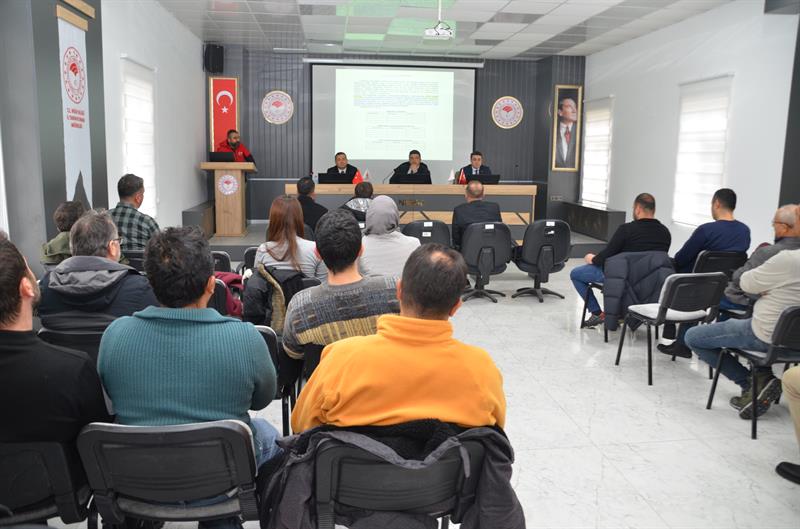 İl Müdürümüz Furkan METE Başkanlığında İl Müdür yardımcılarımız, İlçe Müdürlerimiz ve Konuyla ilgili teknik personellerimizin katılımıyla Hayvan Sağlığı ve Su Ürünleri Şube Müdürlüğümüz tarafından; Hayvan Hastalıkları ile Mücadele ve Hayvan Hareketleri Genelgesi kapsamında 2025 yılı faaliyetlerinin değerlendirilmesi ile epidemiyoloji konusunda eğitim toplantısı düzenlenmiştir. İl Müdürlüğümüz toplantı gerçekleştirilen toplantıda, yürütülen çalışmalar ele alınmış; önümüzdeki dönemde hayvan hastalıklarıyla mücadele, koruyucu hekimlik uygulamaları ve hayvan hareketlerinin kontrolüne yönelik yapılacak çalışmalar hakkında değerlendirmelerde bulunulmuştur.