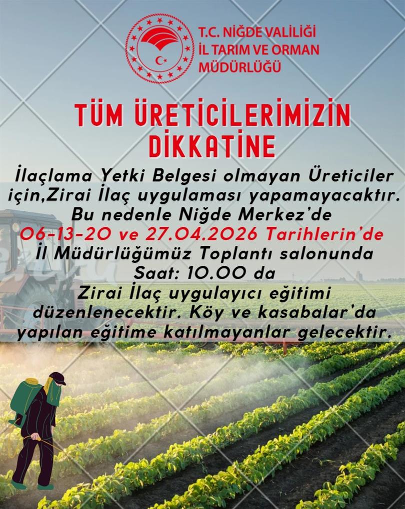 27.04.2026 tarihlerinde saat: 10:00' da, İl Müdürlüğümüz Toplantı Salonunda, "Bitki Koruma